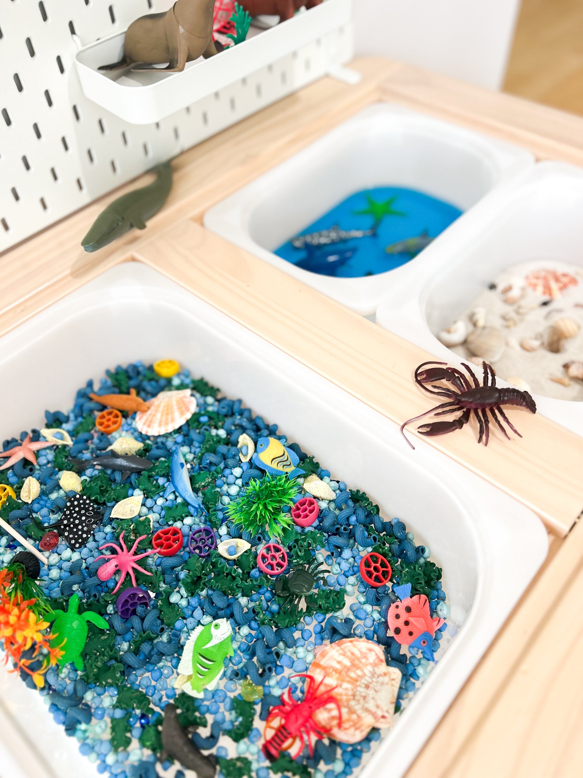 Immerse your little one in the magic of the deep blue sea. This sensory play set allows them to discover the wonders of marine life through hands-on, multi-sensory play. From vibrant coral reefs to playful sea creatures, every piece invites curious exploration and imaginative discovery.